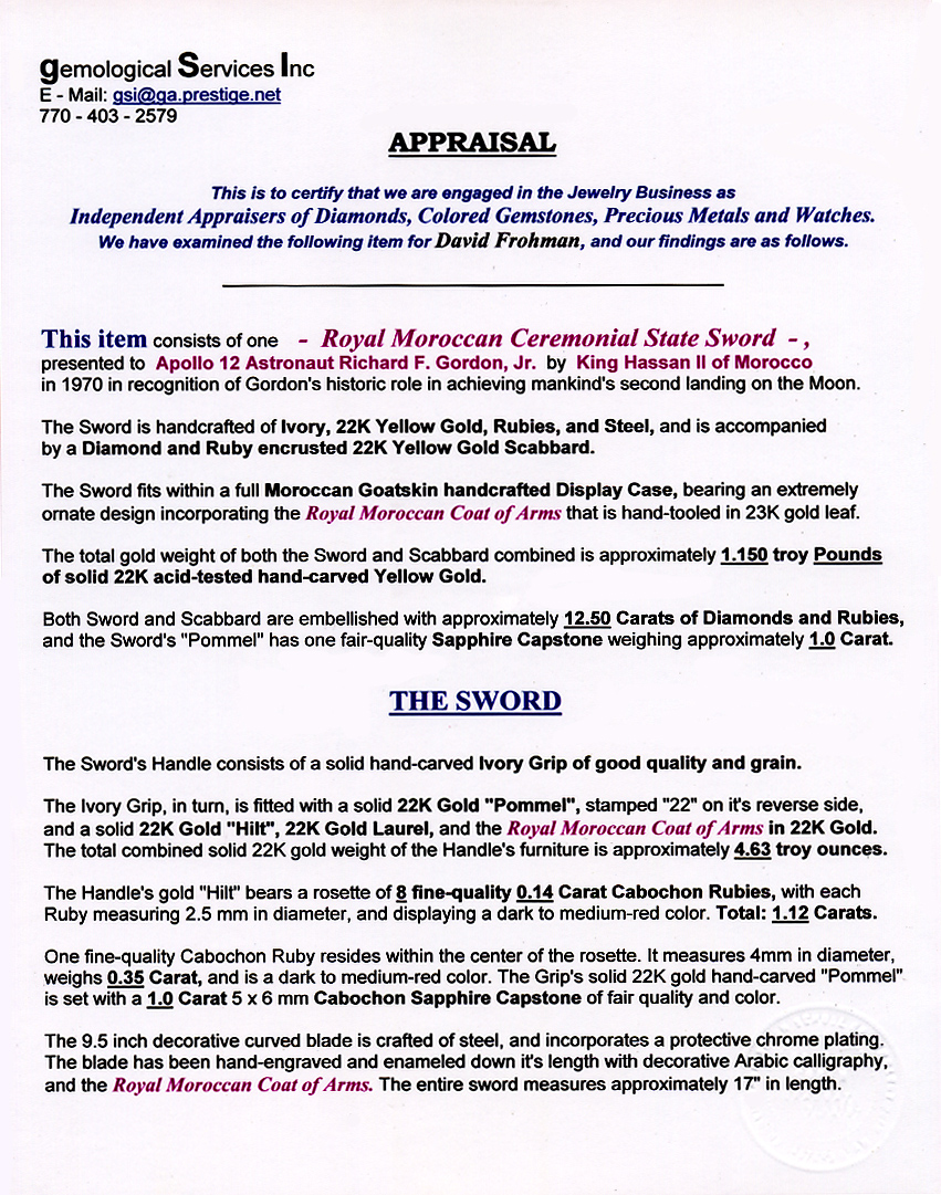 King Hassan II presented each crewmember with a solid gold and jewel-encrusted sword of state.