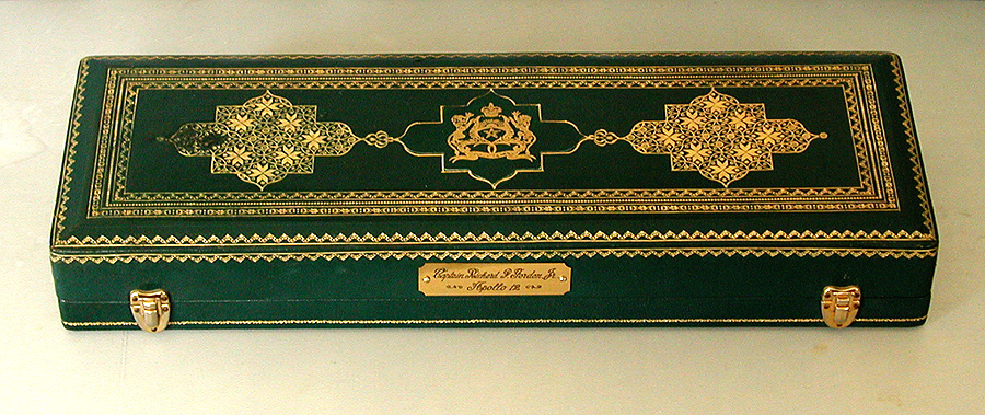 The Sword in its fitted and hand-tooled Moroccan goatskin presentation case