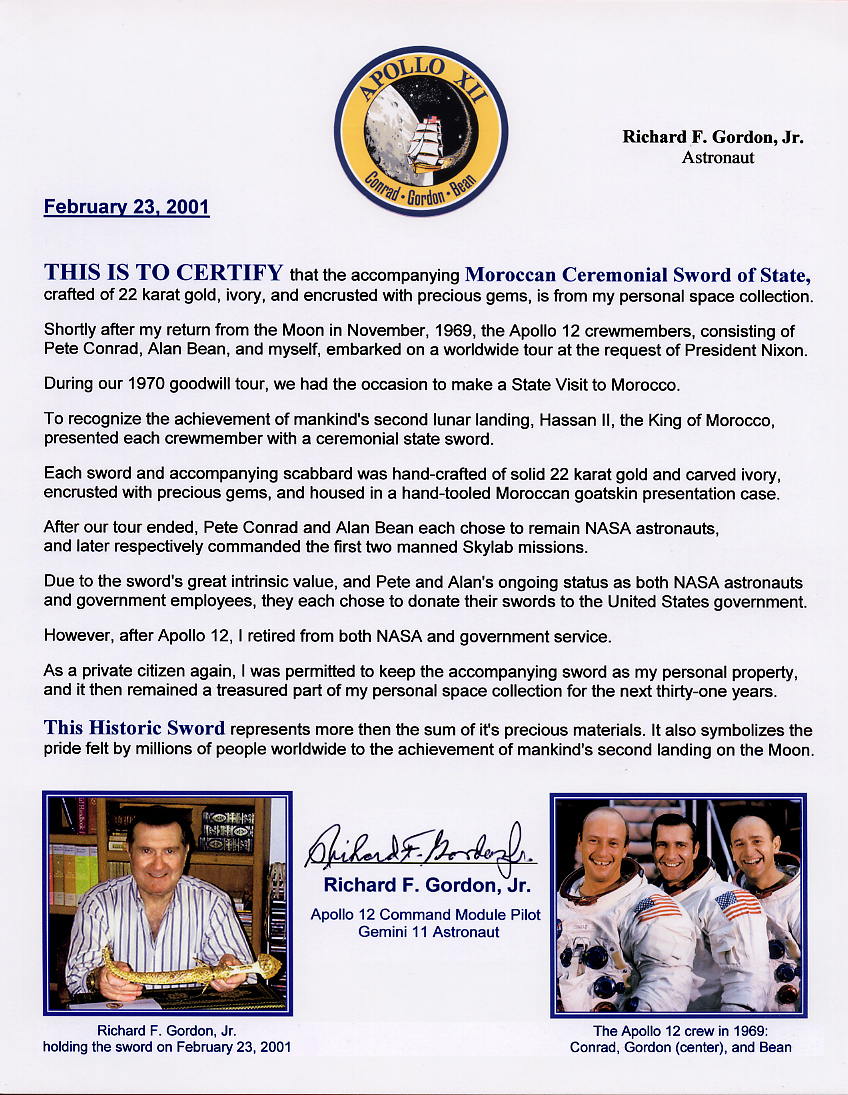 The sword then remained in the "Richard F. Gordon, Jr. Space Collection" for thirty-one years,